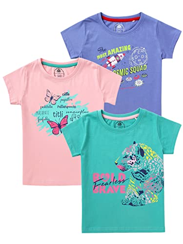 Cub McPaws Girls T-Shirts | Pack of 3 | 100% Cotton | Half Sleeves | 4 to 12 Years
