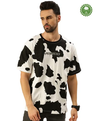 Veirdo 100% Cotton Oversize Drop Shoulder Loose Fit Round Neck Half Sleeve Animal Printed T-Shirt for Men