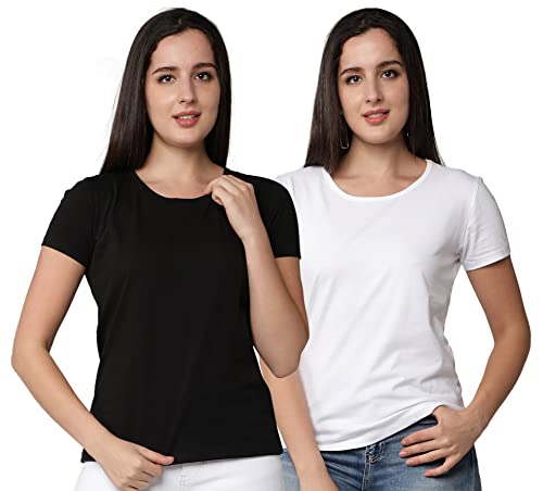 Club A9 Womens Multicolor Cotton Solid Tshirt (Pack of 2)-WRNT2_20000