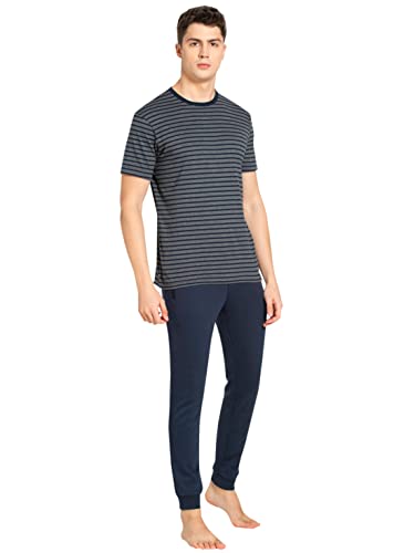 Jockey Men's Navy & Charcoal Melange Regular Fit T-Shirt (2715-01_Navy & Charcoal XL)