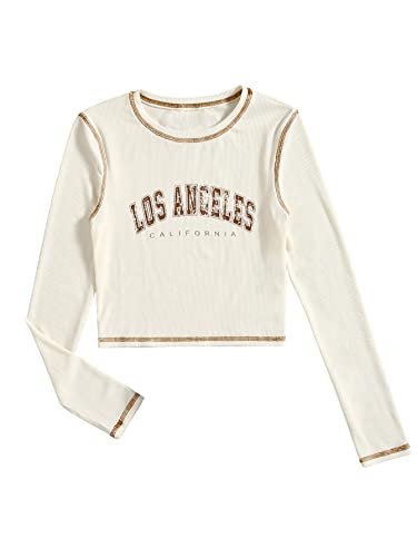 - SOLY HUX Girl's Letter Print Long Sleeve Tee Ribbed Knit Top T Shirt