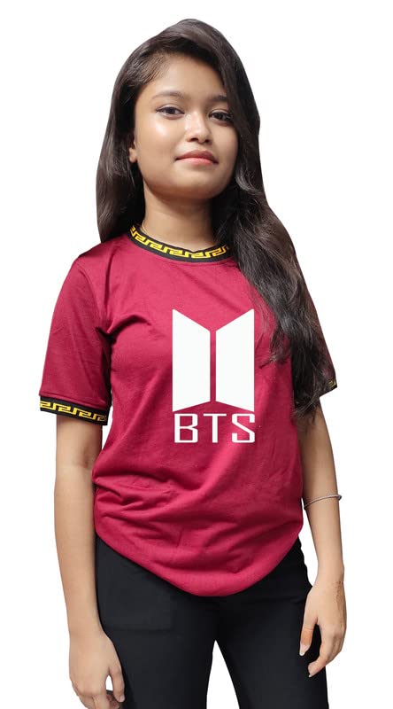 - CrazyInk Girl's Casual Cotton Round Neck Tshirt I Girl's Regular BTS Printed Tshirt I Casual Half Sleeves Solid Pattern Tshirt in Multicolor (Size- 8-16yrs)