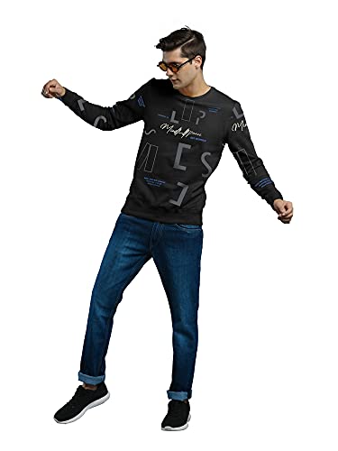 - Jump Cuts Men's All Over Printed Round Neck Fullsleeve Black, Dgrey Cotton Tshirt