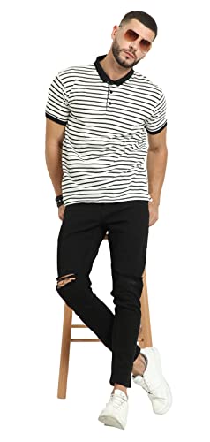 - Fanideaz Men’s Cotton Half Sleeve Striped Polo T-Shirts