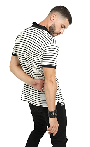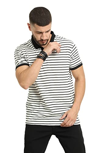 bestvMens Regular Fit Striped Cotton Polo Tshirt